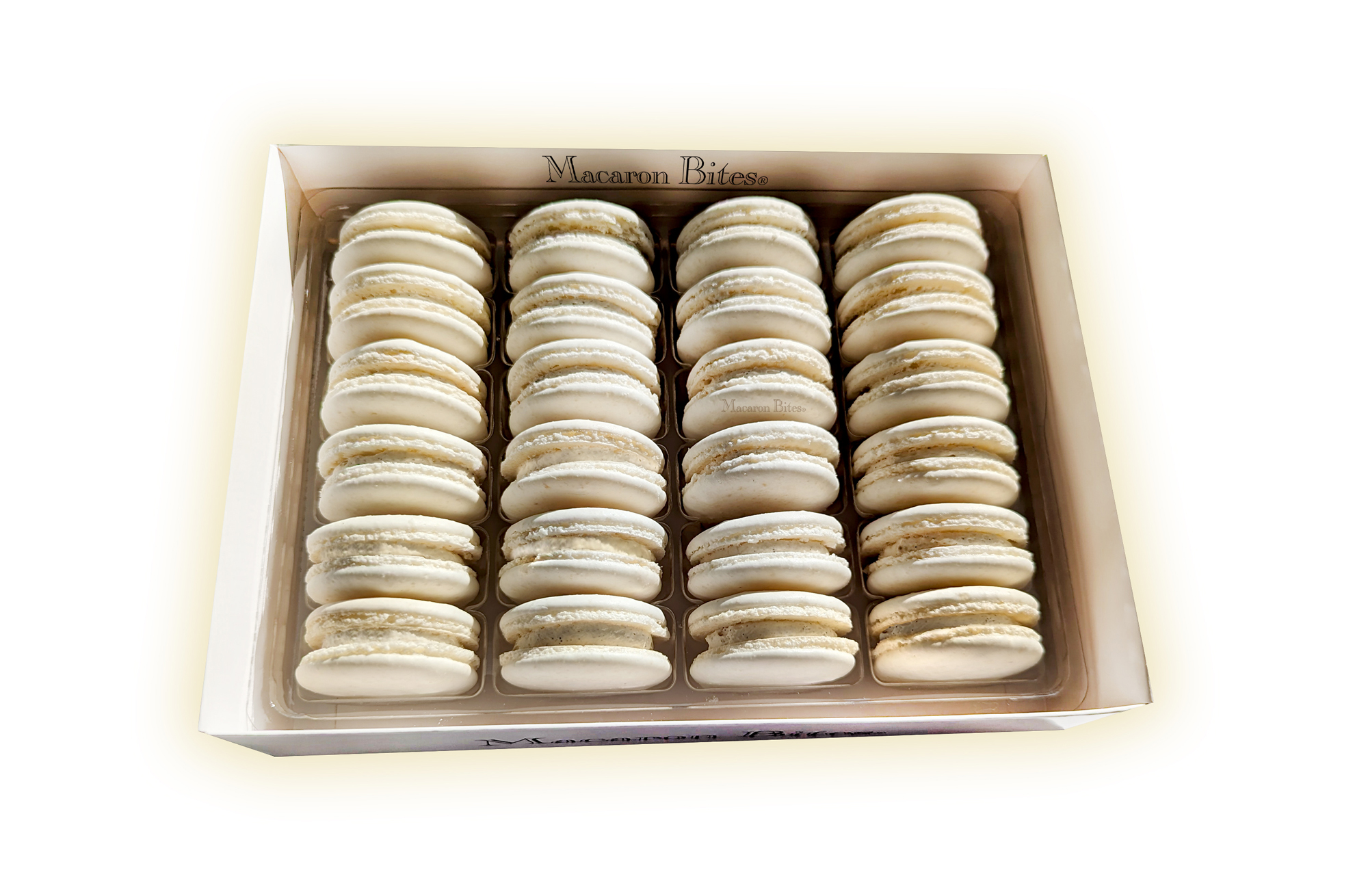 Indulge in the Irresistible Delight of Macaron Bites® – Box of 24 Vanilla Macarons